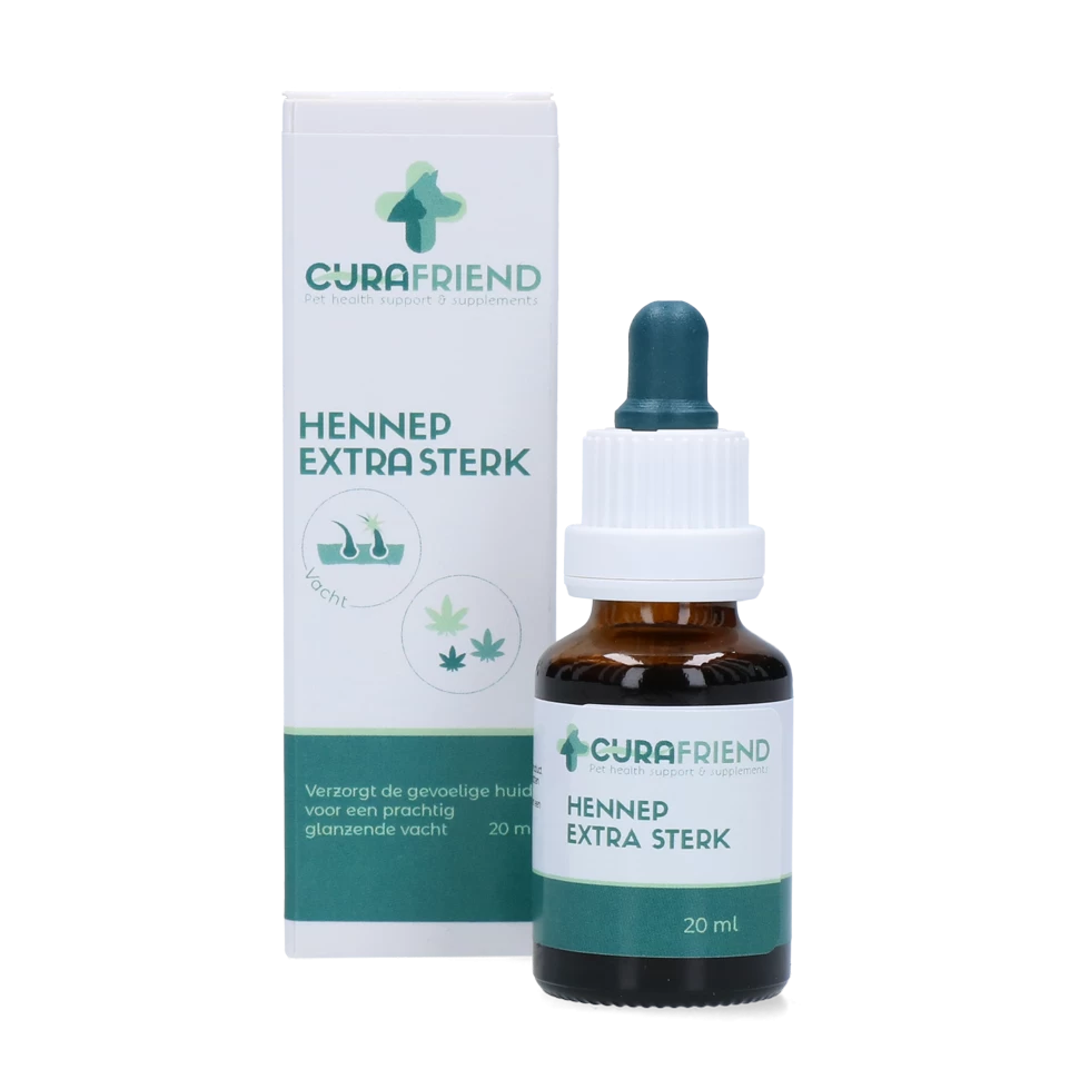 CuraFriend Hennep Extra Sterk is een huidverzorgingsproduct op basis van hennepzaadolie en een CBD-houdend hennepextract. Het hydrateert, verzorgt de gevoelige huid van de hond of kat en zorgt bovendien voor een prachtig glanzende vacht. CuraFriend Hennep Extra Sterk heeft een pipet van glas en is verkrijgbaar in twee formaten.