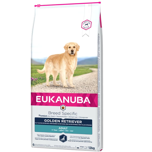 Deze rasspecifieke voeding is ontwikkeld in samenwerking met dierenartsen en wordt aanbevolen door topfokkers. Het is 100% compleet en uitgebalanceerd zodat uw metgezel op ieder gebied het beste uit zichzelf kan blijven geven. Met name golden retrievers, maar ook flatcoated retrievers, Portugese waterhonden, Ierse waterspaniëls en Italiaanse spinones zijn op hun best met EUKANUBA’s volwassen voer voor golden retrievers dat speciaal op hun behoeften is toegespitst.