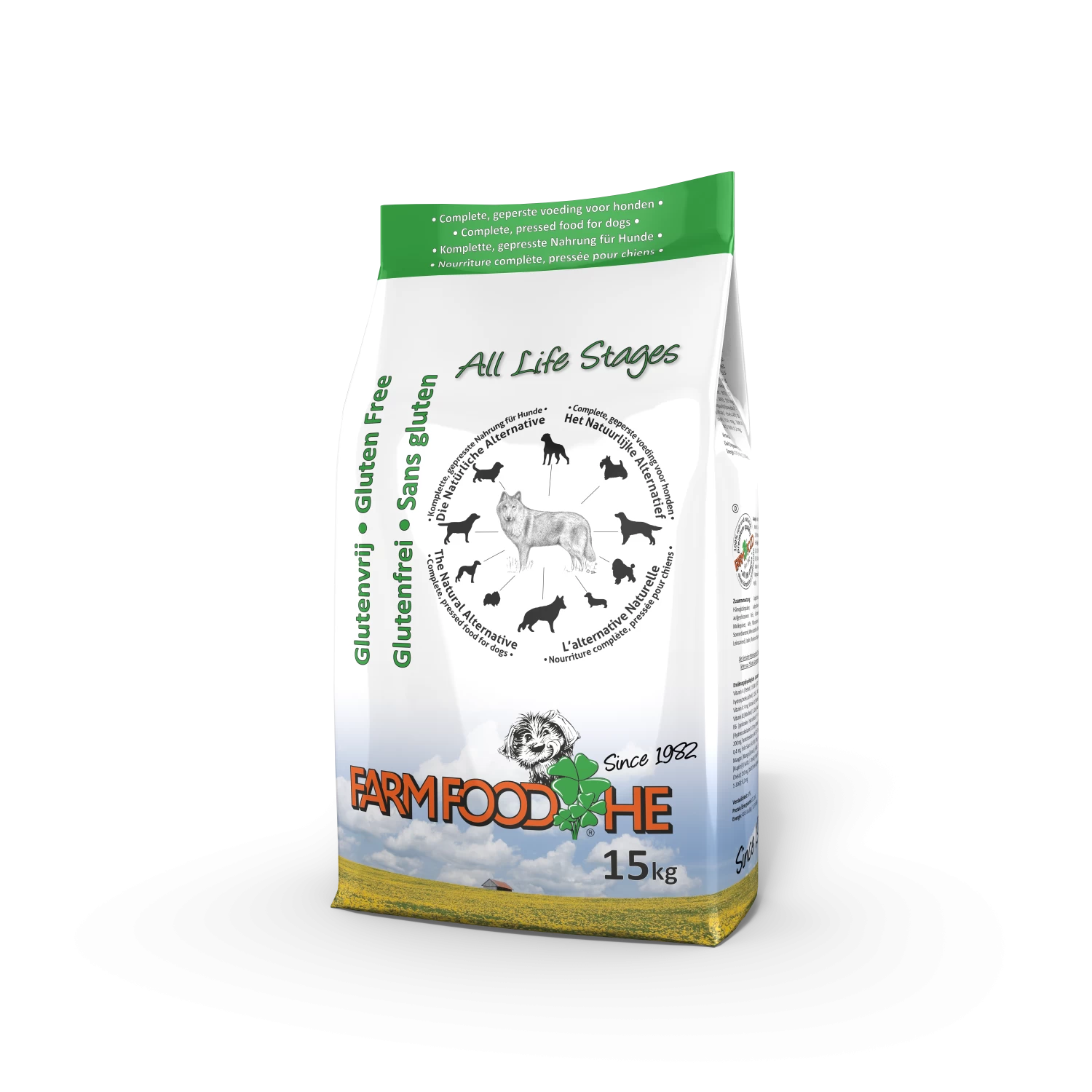 De samenstelling van Farm Food HE “Glutenvrij” is in de basis gelijk aan Farm Food HE “Classic” en Farm Food HE “Schotse Zalmolie”. Het grote verschil is echter dat de tarwe is vervangen door Sorghum en rijst (beide zijn gepoft, daardoor voorgekookt).Â