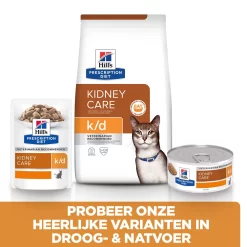 Hill’s voedingsdeskundigen en dierenartsen hebben Hill’s Prescription Diet k/d klinische voeding ontwikkeld om de vitale nierfunctie van je kat te beschermen en de eetlust te vergroten en de voedselopname te verhogen. Dit droogvoer is gemaakt met tonijn en heeft een onweerstaanbare smaak waar je kat dol op zal zijn. Prescription Diet k/d is klinisch bewezen voeding om de kwaliteit van leven te verbeteren en te verlengen.