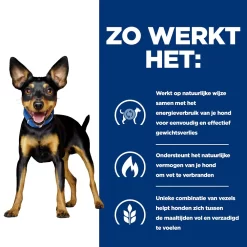 Hill’s voedingsdeskundigen & dierenartsen ontwikkelden speciaal Prescription Diet Metabolic klinische voeding om honden te helpen gewicht te verliezen en daarna in vorm te blijven. Het werkt op een natuurlijke manier met het unieke energieverbruik van jouw hond voor een gemakkelijk en effectief gewichtsverlies. Dit voer stimuleert het natuurlijk vermogen van het lichaam van je hond om vet te verbranden en levert energie om actief te spelen. De unieke vezelmix helpt honden een vol en voldaan gevoel te geven. Het is zelfs zo dat 96% van de honden thuis binnen 2 maanden waren afgevallen met Prescription Diet Metabolic-voer.* Deze brokken zijn gemaakt met kip en hebben een onweerstaanbare smaak waar je hond dol op zal zijn.