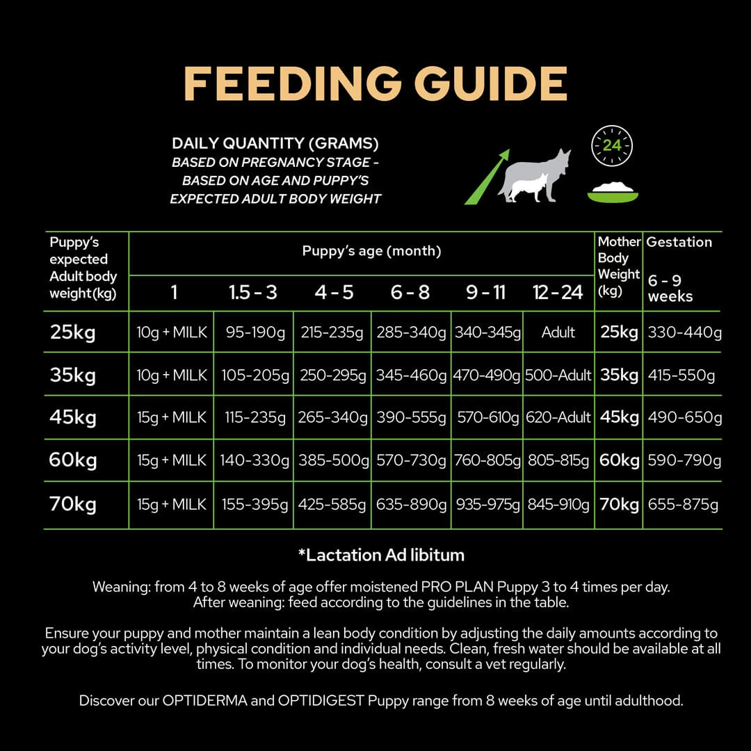 Pro Plan Medium Puppy Optistart werd ontwikkeld om optimaal te voldoen aan de noden van puppy’s van grote rassen met een volwassen gewicht van meer dan 25kg met een slanke atletische lichaamsbouw*. Deze formule is rijk aan antilichamen die het immuunsysteem van je puppy ondersteunen en zijn gezondheid verbeteren.