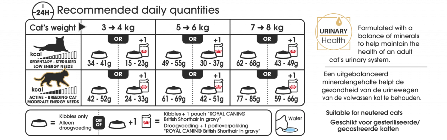 Sterke botten en spieren Een dikke vacht. Die ronde kop met die massieve kaak. Een brede volle borst en korte sterke poten. Aan alles zie je het. De Brits Korthaar heeft sterke botten en krachtige spieren. Speciaal voor de kittens van dit ras heeft ROYAL CANIN® British Shorthair Kitten ontwikkeld. Het ondersteunt een gezonde spier- en botgroei. Brokje ontworpen voor de unieke kaak Bij de ontwikkeling van de gezonde voeding British Shorthair Kitten hebben we ook gekeken naar de unieke kaak van je kitten. De brokken stimuleren het kauwen en zijn makkelijk op te pakken. Het draagt bij aan een optimale spijsvertering en helpt de natuurlijke weerstand ondersteunen. De Brits Korthaar houdt van spelen. Daag je kitten uit om actief te zijn. Dagelijkse beweging is voor je kitten essentieel om een gezond gewicht te behouden.