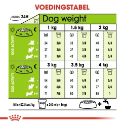 ROYAL CANIN® X-Small Adult 8+ is geschikt voor zeer kleine honden met een lichaamsgewicht tot 4 kilogram, en is speciaal samengesteld met de voedingsbehoeften van jouw kleine volwassen hond in het achterhoofd.