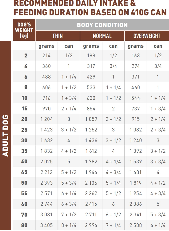 Dankzij de hoge energiedichtheid kan met een kleine portie volledig in de energiebehoefte van de hond worden voorzien.