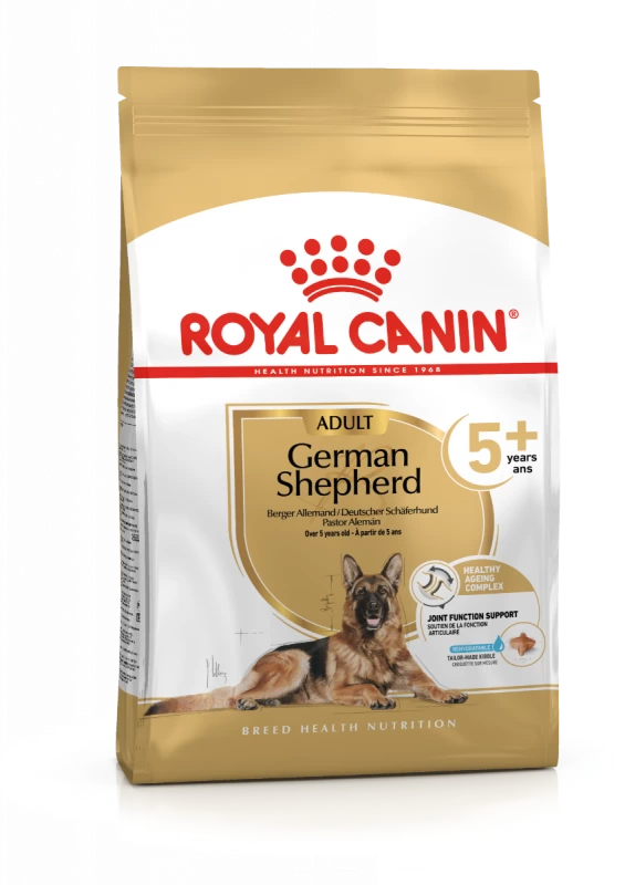 Als de Duitse Herder wat ouder wordt, wordt het nog belangrijker zijn botten en gewrichten zo goed mogelijk te ondersteunen met voedingsstoffen die bijdragen aan sterke botten en gewrichten. ROYAL CANIN® German Shepherd Adult 5+ bevat specifieke voedingsstoffen, waaronder collageen en Omega-3 vetzuren EPA & DHA om het kraakbeen tijdens het verouderingsproces te ondersteunen en om te helpen de botten en gewrichten zoveel mogelijk in goede conditie te houden.