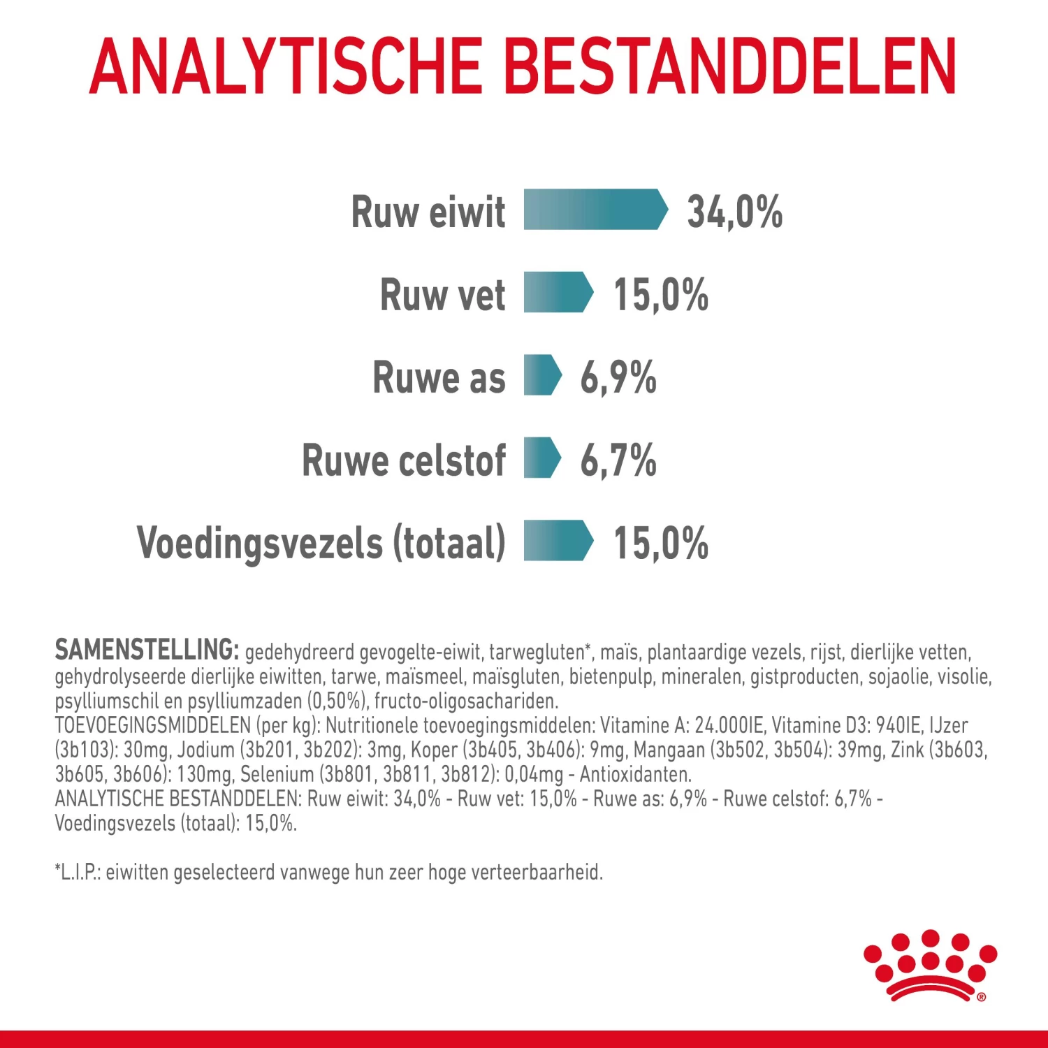 ROYAL CANIN® Hairball Care is een complete en uitgebalanceerde voeding die speciaal is ontwikkeld om de vorming van haarballen te helpen verminderen. Dankzij een specifieke combinatie van voedingsvezels (waaronder psyllium) helpt ROYAL CANIN® Hairball Care de darmpassage te stimuleren. Hierdoor kunnen de haren die je kat inslikt makkelijker via de ontlasting worden uitgescheiden. De ingeslikte haren zullen zich dan minder ophopen tot haarballen, die de kat uitbraakt. De balans van mineralen in de voeding helpt voorts om de urinewegen van je volwassen kat gezond te houden.