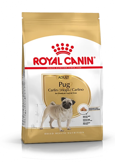 ROYAL CANIN® Pug Adult is geschikt voor Mopshonden vanaf een leeftijd van 10 maanden, en is speciaal samengesteld met de voedingsbehoeften van jouw volwassen Mopshond in het achterhoofd.