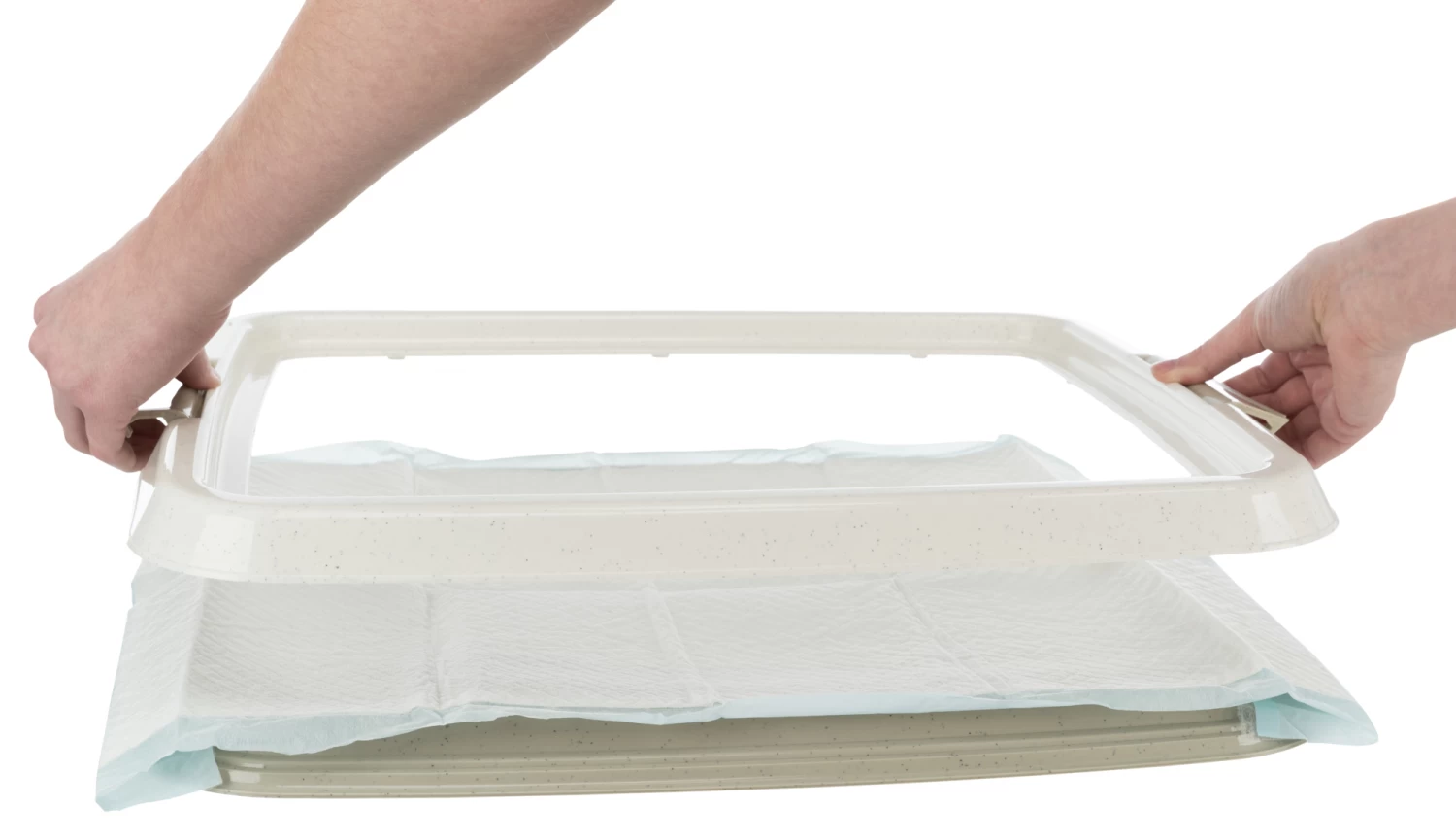 - Klem-frame houdt de puppy-mat veilig op zijn plek, ook al is deze flink doorweekt
