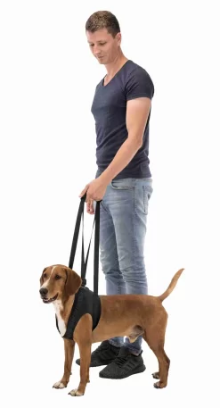 Laat je hond eerst wennen aan het gebruik van een loophulp. Let er op dat je bij het gebruik geen lichaamsdelen afklemd.