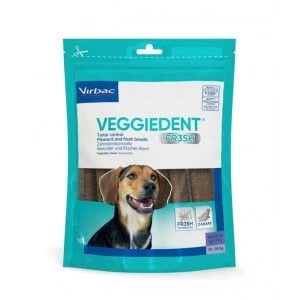 Nieuwe formule – De kauwlamellen VEGGIEDENT FR3SH helpen bij het bestrijden van tandproblemen en meer bepaald bij een slechte adem, terwijl het gelijkertijd een plezier is voor het dier